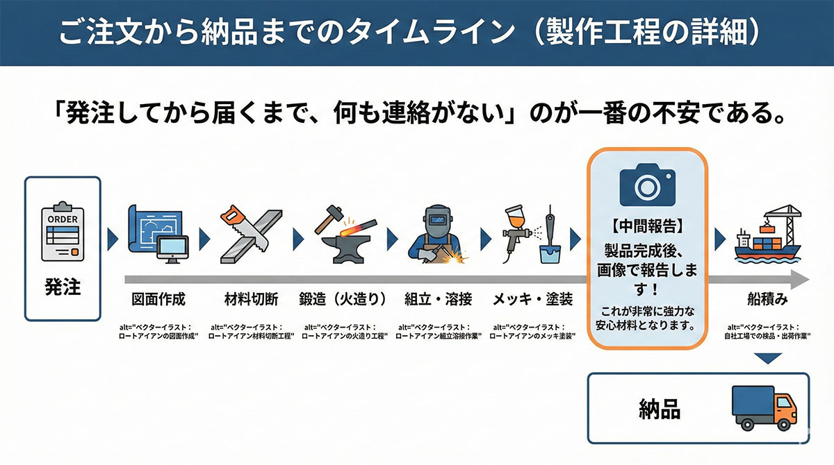 ご注文から納品までのタイムライン(製作工程の詳細)